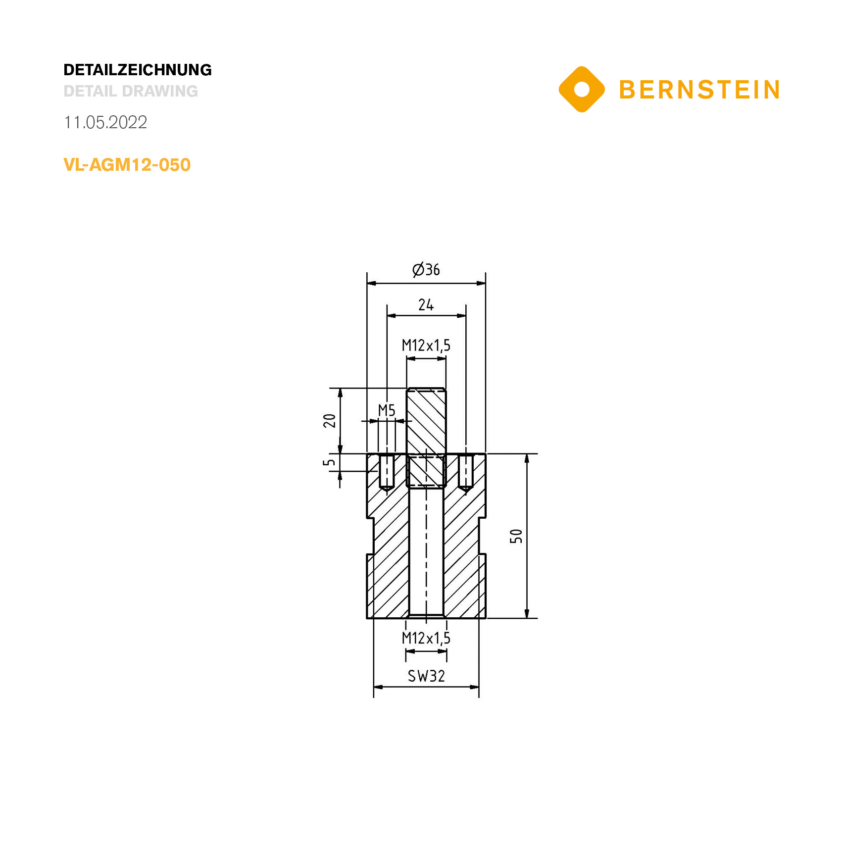Amber extension 50 mm external thread M12x1.5 quantity