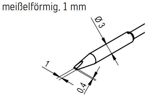 Desoldering tip set chisel-shaped 1.0 mm wide, incl. heating element, with ERSADUR-LF coating.