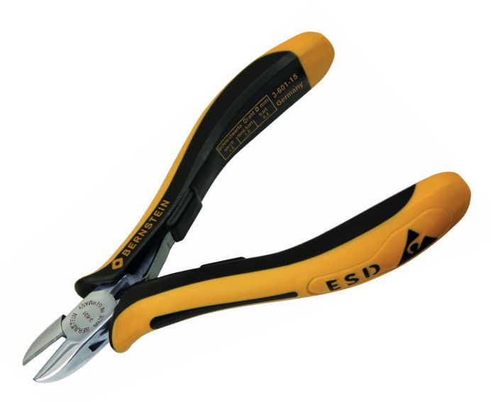 BERNSTEIN side cutters, 115 mm, CLASSICline with rounded pliers head, conductive black hand protection sleeves; cutting values: soft wire 1.0 mm, hard wire 0.4 mm