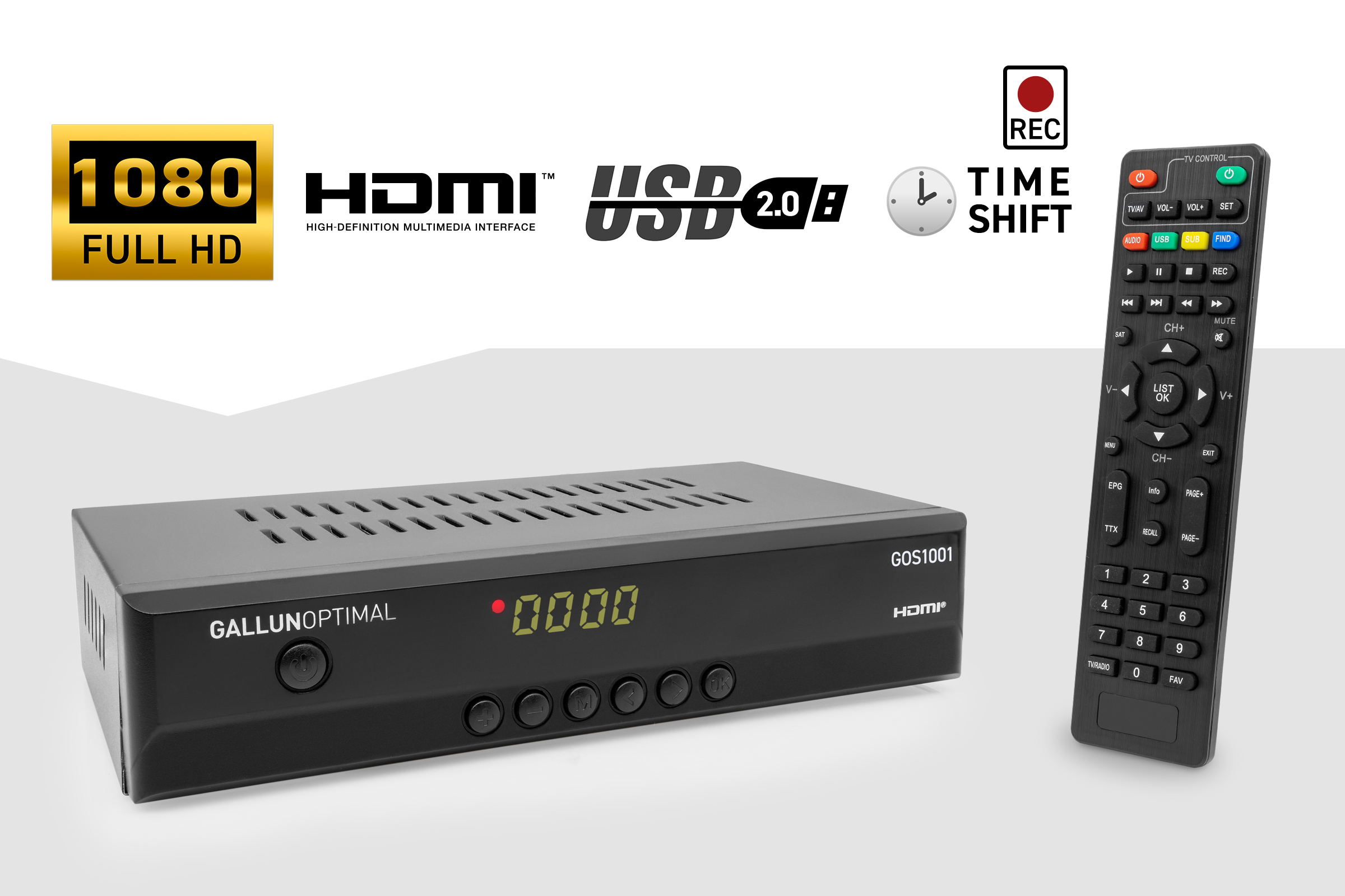 Über den USB-Anschluss an der Front lassen sich Medien wie Videos, Musik und Fotos abspielen. In der PVR-Variante kommt die Aufnahmefunktion dazu: Mit einem angeschlossenen USB-Speicher können Sendungen direkt auf USB aufgenommen werden. Zusätzlich bietet Timeshift die Möglichkeit, Live-TV zu pausieren und später an gleicher Stelle weiterzuschauen. HDMI und Scart sorgen für Kompatibilität mit modernen und älteren Fernsehern, während S/PDIF coaxial digitalen Ton ausgibt. Durch die Unterstützung von DOCS 1 (EN 50494) und DOCS 2 (EN 50607) ist der Receiver auch für viele Einkabelanlagen (Unicable) geeignet. Der Standby-Verbrauch liegt unter 1 Watt.