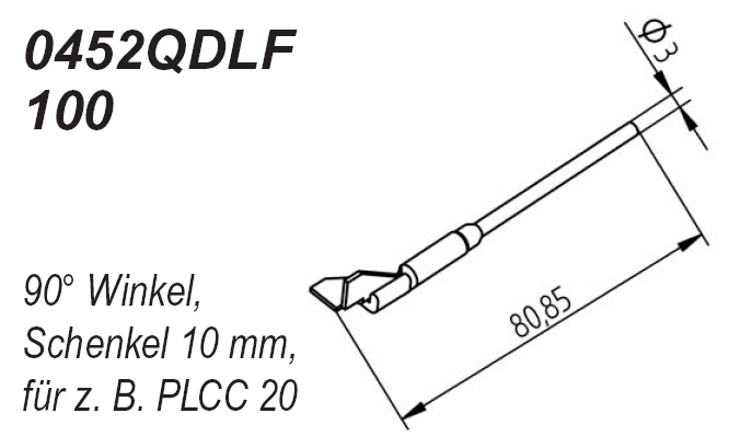 Auslötspitzen-Satz mit Schenkel im 90° Winkel, Schenkellänge 10,0 mm, mit ERSADUR-LF-Beschichtung für das Bauteil PLCC 20.