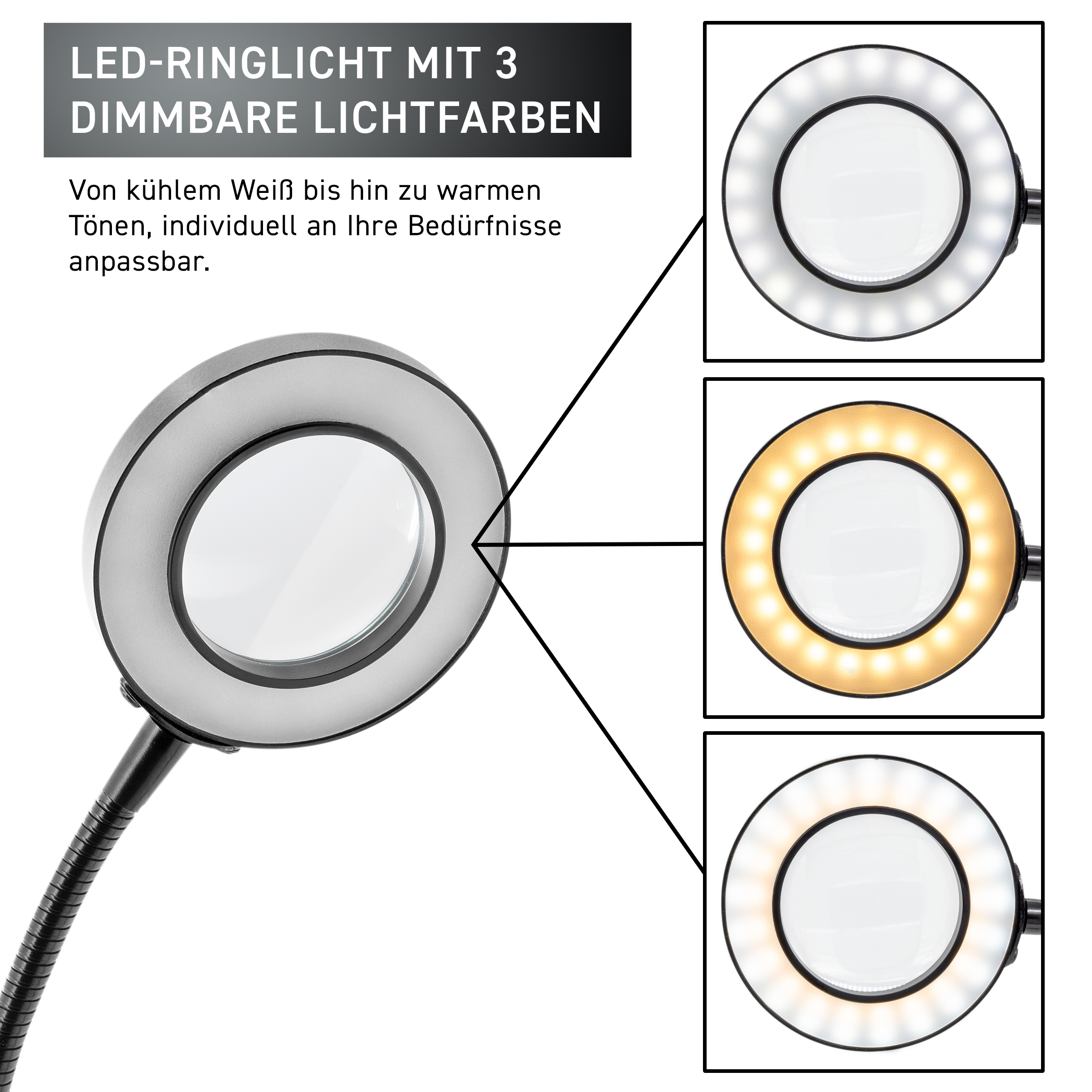 Flexible Lupenleuchte mit Magnetfuß & LED-Ringlicht für Technikarbeitsplätze