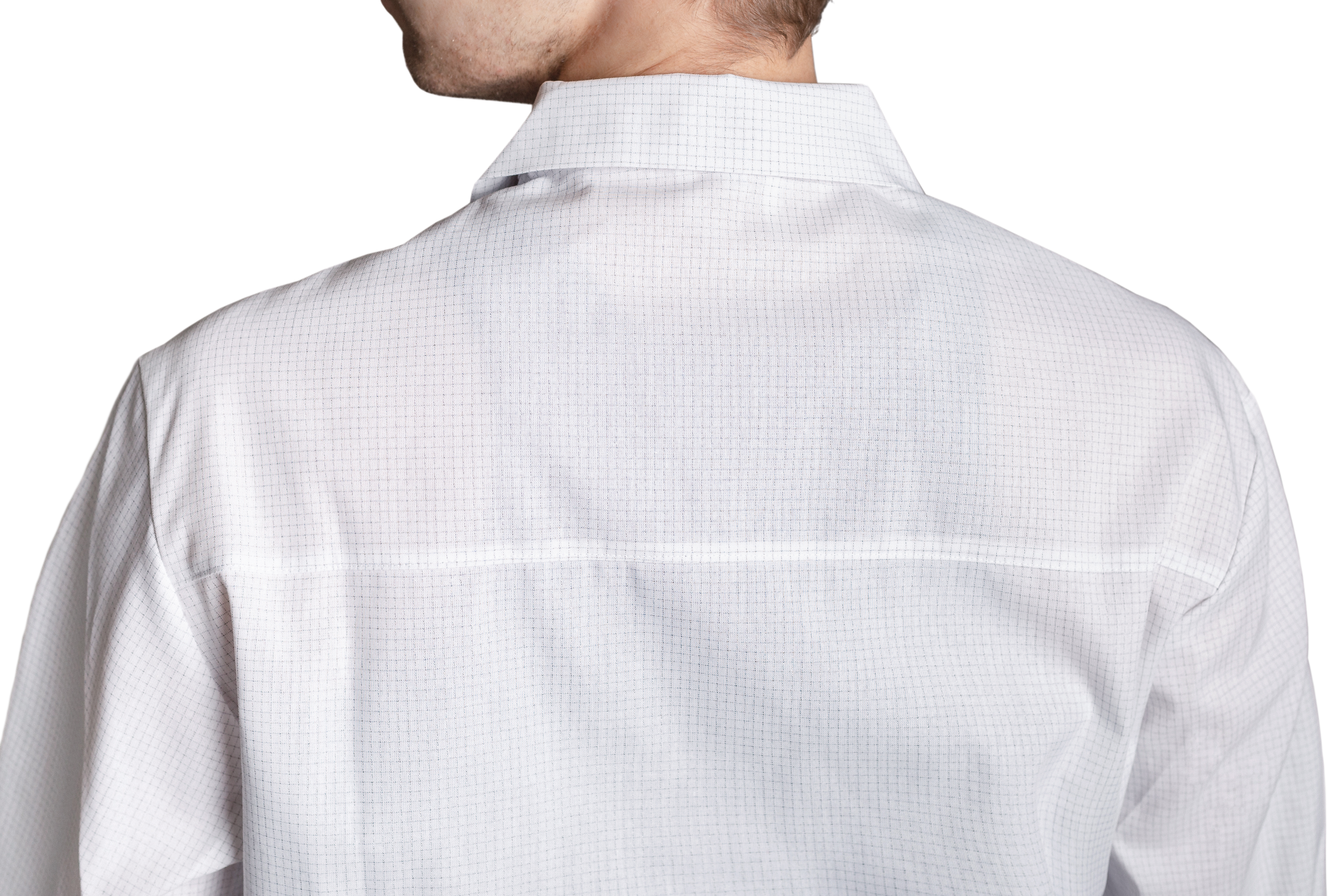 ESD- Herrenarbeitskittel ¾ lang, mit EPA-Prüfprotokoll, aus besonders leichtem und strapazierfähigem Gewebe, 3 aufgesetzten Taschen und EPA-Logo.