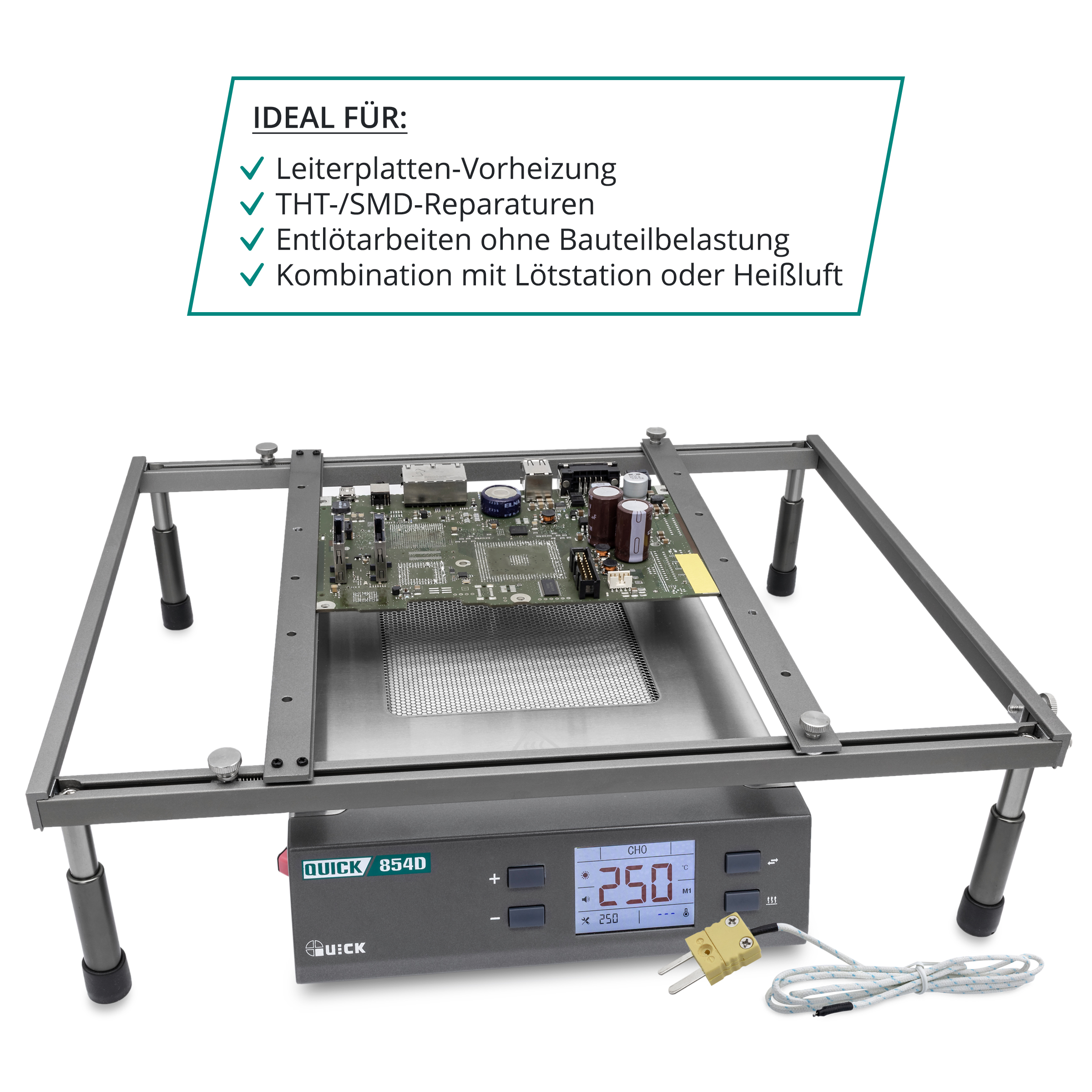 – Heizfläche ca. 130 x 130 mm mit Edelstahlgitter für Baugruppenschutz