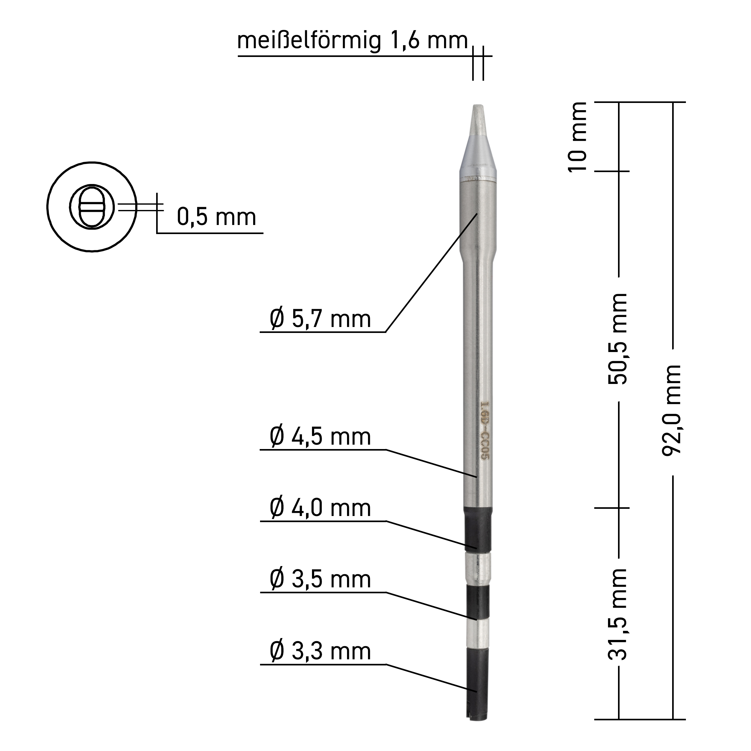 Kartuschenlötspitze für TS8, gerade, meißelförmig stumpf 1,6mm breit x 0,5mm, 5mm Lot-benetzt