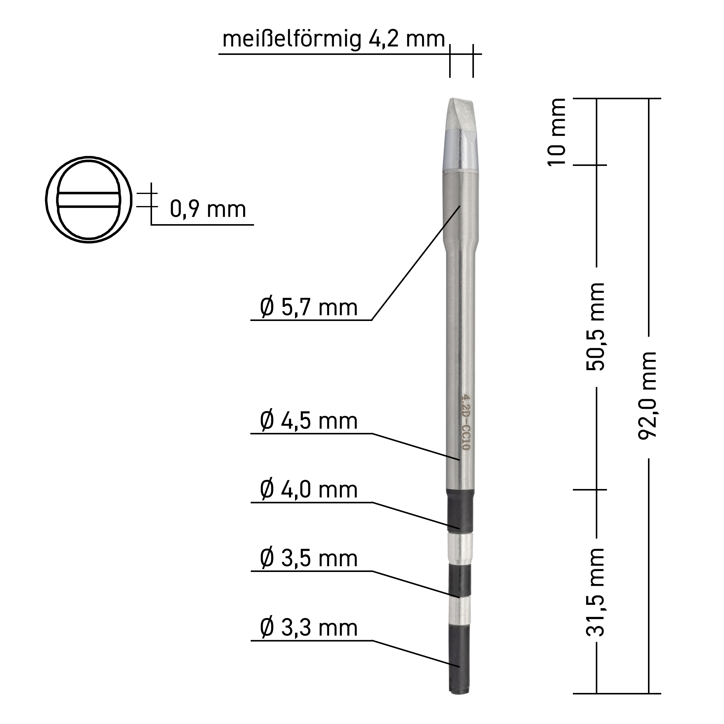 Erreicht wird das durch die direkte Einheit von Lötspitze und Heizkörper. Ein in der Spitze integriertes Thermoelement sorgt dabei für schnellstes Nachregeln der benötigten Energie und ist ideal geeignet auch für die anspruchsvolleren Lötaufgaben.