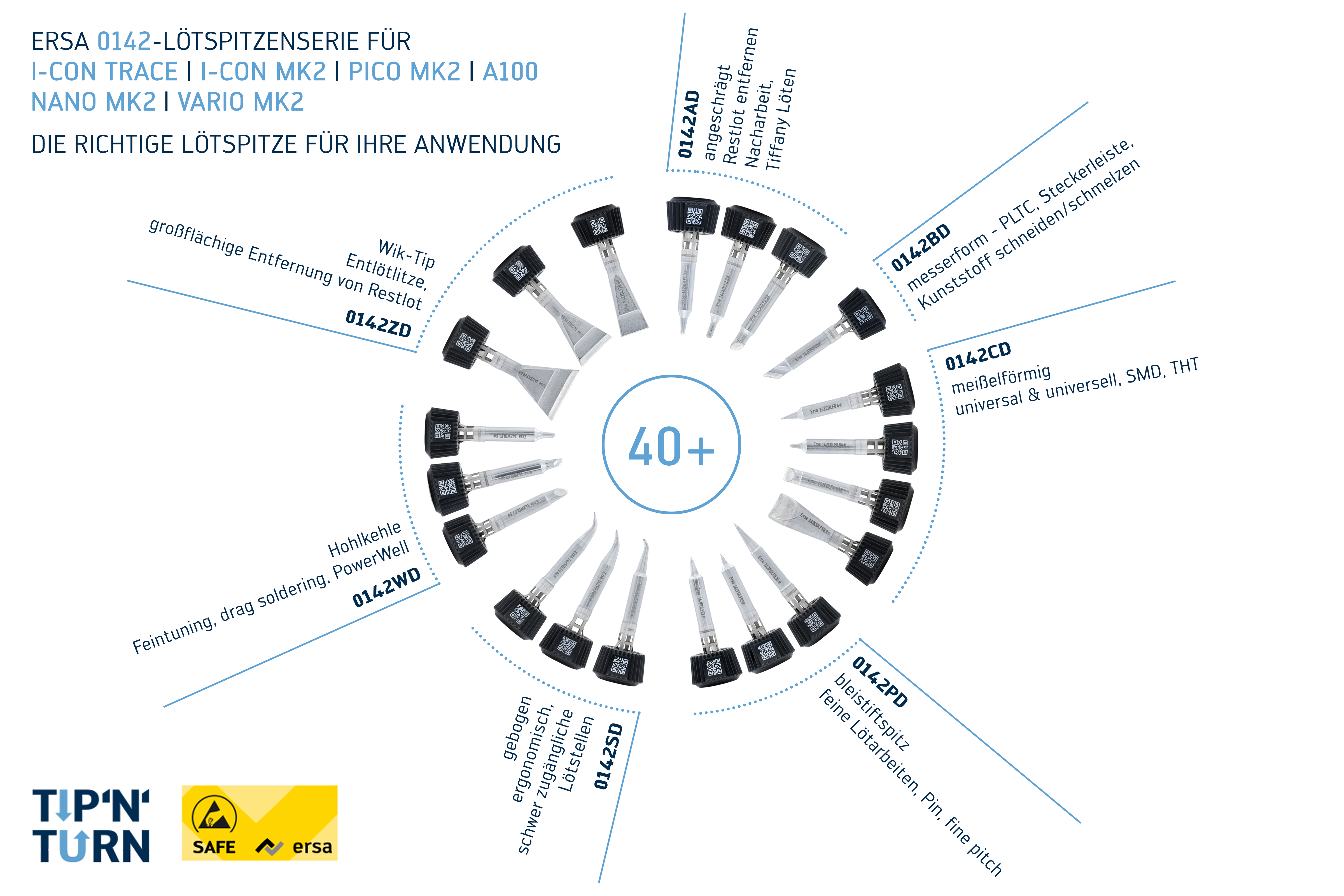 ERSA ERSADUR Lötspitzen für i-Tool TRACE sind in folgenden Varianten erhältlich: