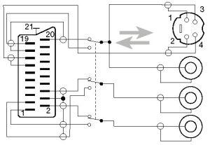Scartadapter Stecker <> 3x Cinchbuchse, 1x SVHS-Buchse, IN/OUT schaltbar